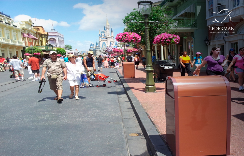 Um dos exemplos mais conhecidos da Disney é o das lixeiras nos parques. Após estudos de comportamento, a empresa identificou que: um visitante caminha, em média, cerca de 27 passos antes de descartar algo.